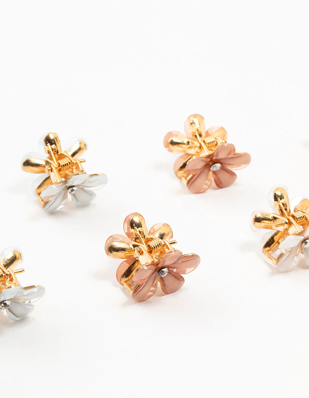 Elevate your style with these colourful mini floral claw clips featuring a hint of diamante flair. This 6-pack of sleek, versatile accessories adds dazzle to any look, from a messy bun to a night out. A must-have for your accessory collection.